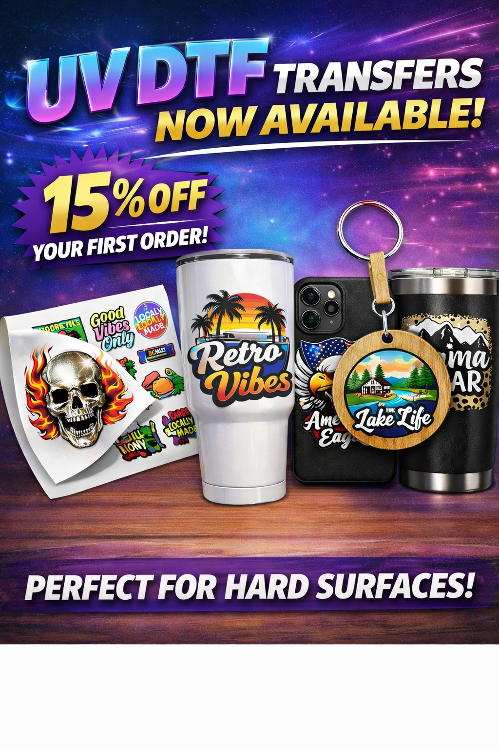 Experience the next generation of printing technology Direct-to-Film (DTF) Transfers. Unlike traditional screen printing or vinyl, DTF allows you to print full-color, high-definition designs on virtually any fabric cotton, polyester, blends, and more. The result? Bold, durable, and vibrant prints that stand out wash after wash.
